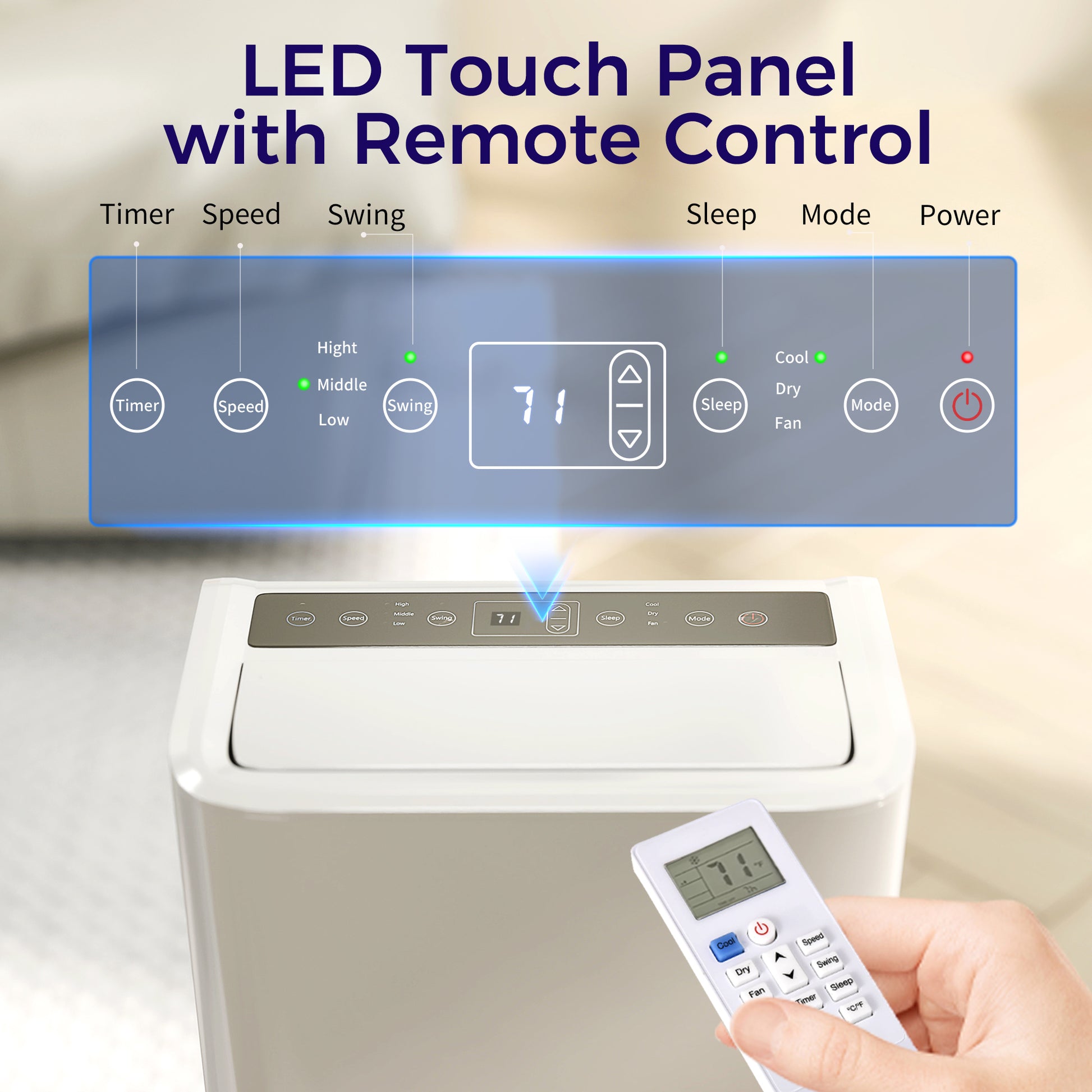 12000 BTU Portable Air Conditioner with Remote Control, Free Standing AC Unit with Built-in Cool, Dehumidifier, Fan Modes for Room Up to 550 Sq.Ft., 24 Hour Timer, Window Installation Kit