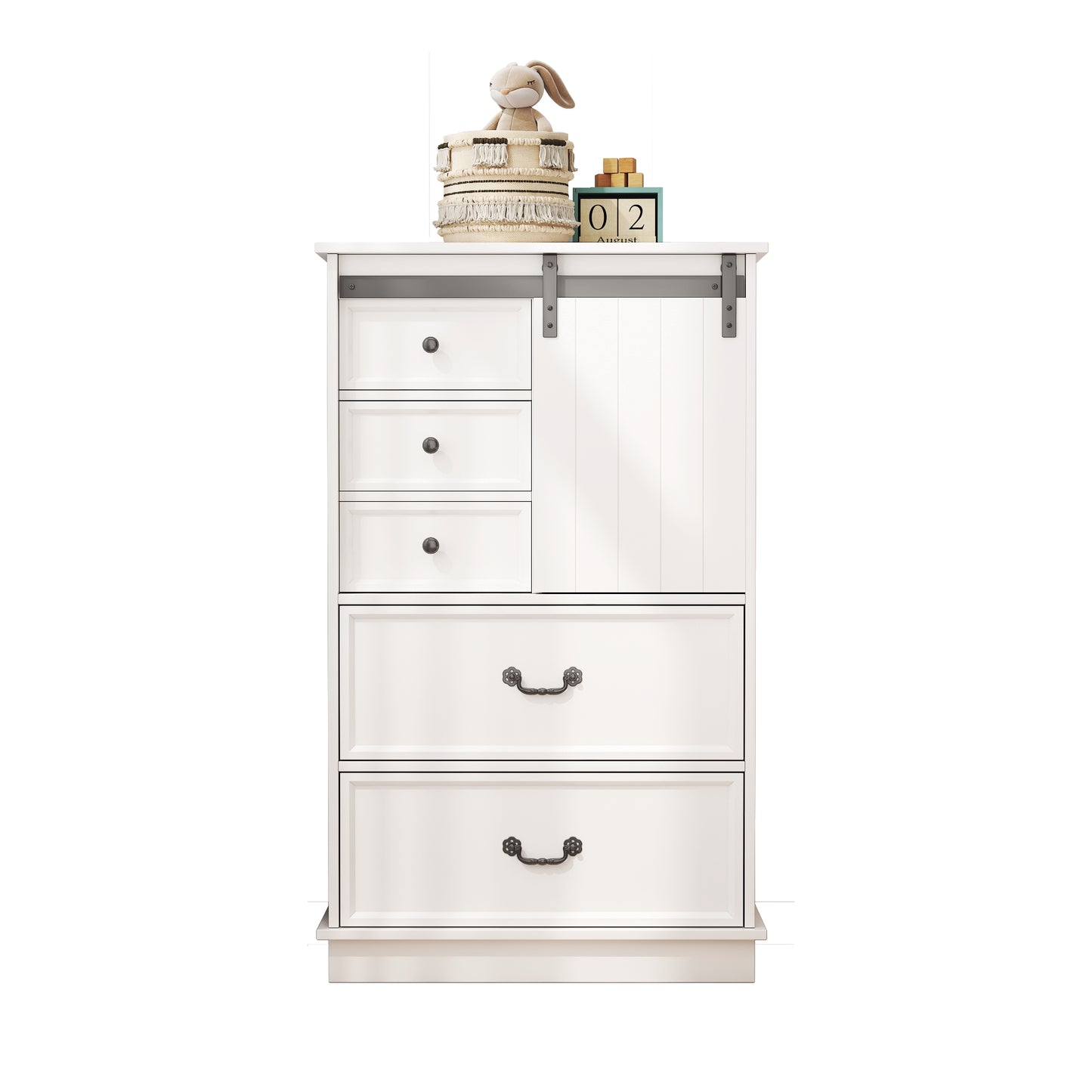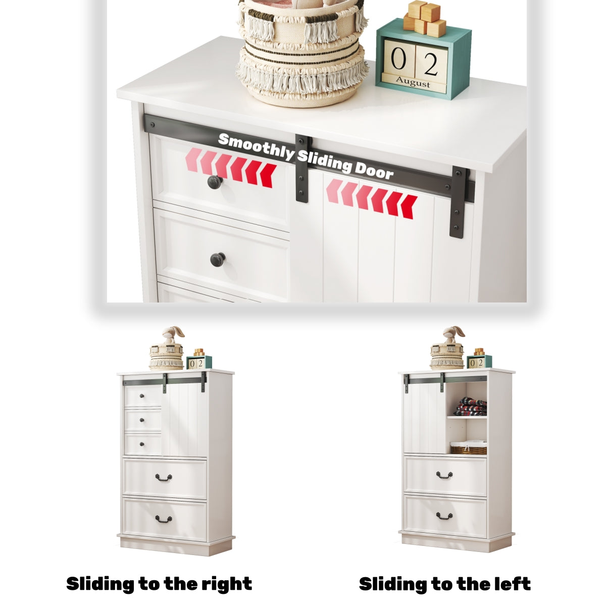 Diese Schubladenkommode enthält 3 kleine und 2 große Schubladen sowie ein verstellbares Regalfach, das je nach Bedarf unterschiedlichen Platz bietet.