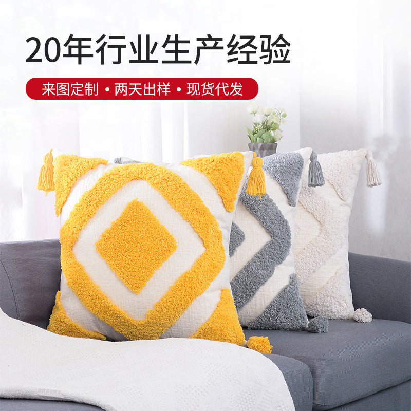 Böhmisches Kissen Kissenbezug getuftet quadratische Quaste Ins nordischen Stil süße Kissenbezug einfache Wohndekoration