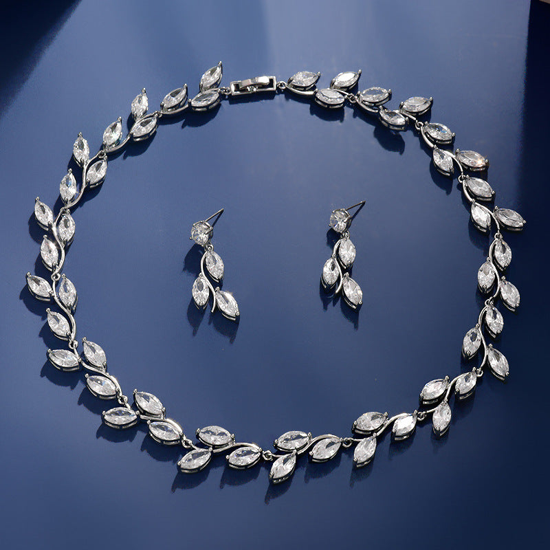 Copper 3A Zircon Necklace Earrings Wedding