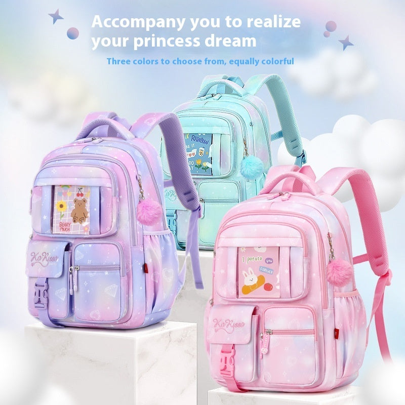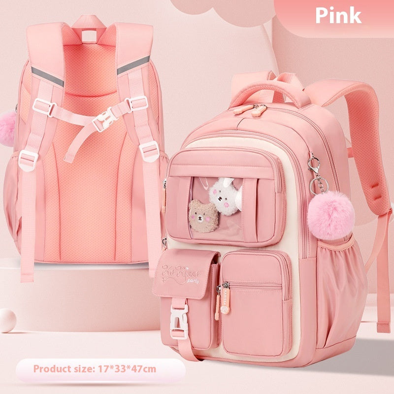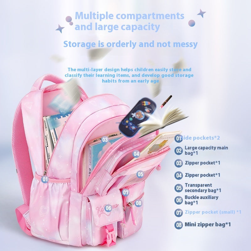 Pink Princess Primary School Student Schoolbag Children Backpack Girl Lightweight And Large Capacity