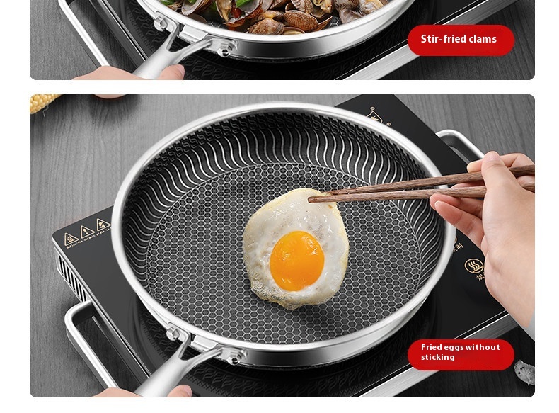 Stainless Steel Frying Pan Household Uncoated Induction Cooker Applicable To Gas Stove