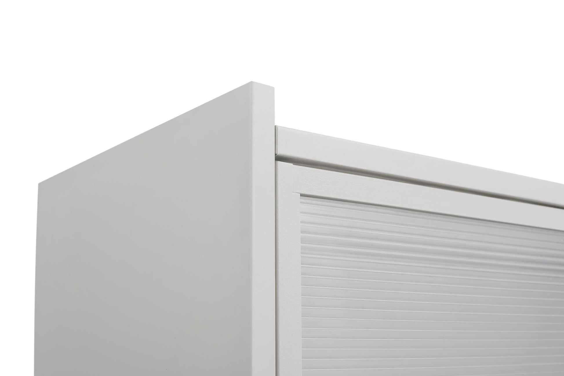 Our storage cabinet is designed with elegant doors with fluted PC board doors, which offer the functionality of masking sundries and increases interior hazy beauty.