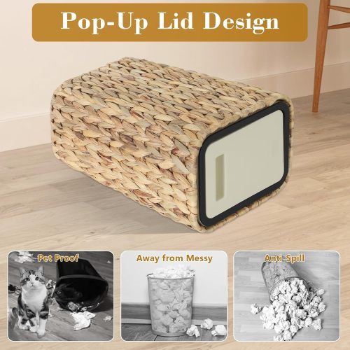 Bohemian Trash Can with Covered Bathroom, 2.6 Gallon Small Rattan Trash Can with Press Top Lid, Woven Trash & Basket 2-in-1 Wicker Trash Can for Bathroom, Kitchen, Living Room, Bedroom