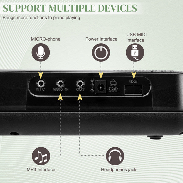 Glarry GEP-109 61 Key Lighting Keyboard complete with 200 timbres, 200 rhythms, 60 demo songs and LED display with 3 teaching modes(Single-finger; Follow; Concert), it's perfect instrument for a beginning player. Complete with built-in two stereo speakers provide excellent sound quality, At the same time we also give away one headphone so you don't worry will disturb others' relax when you are playing.