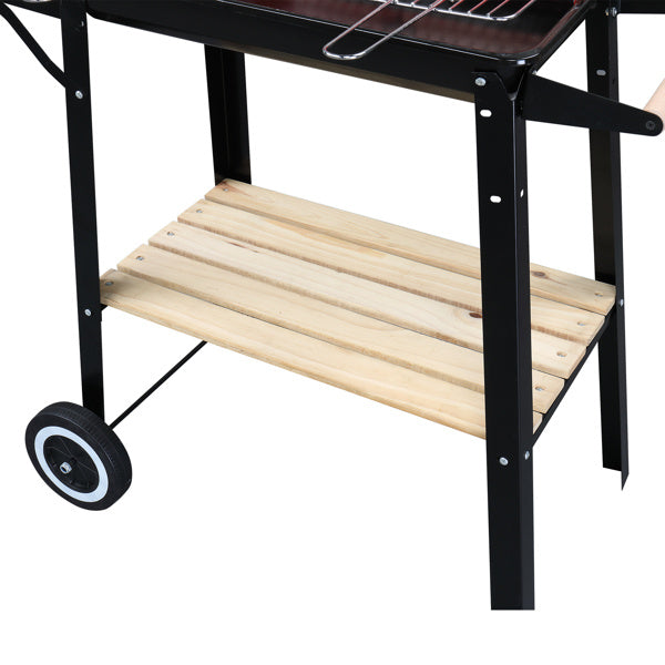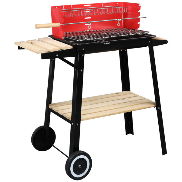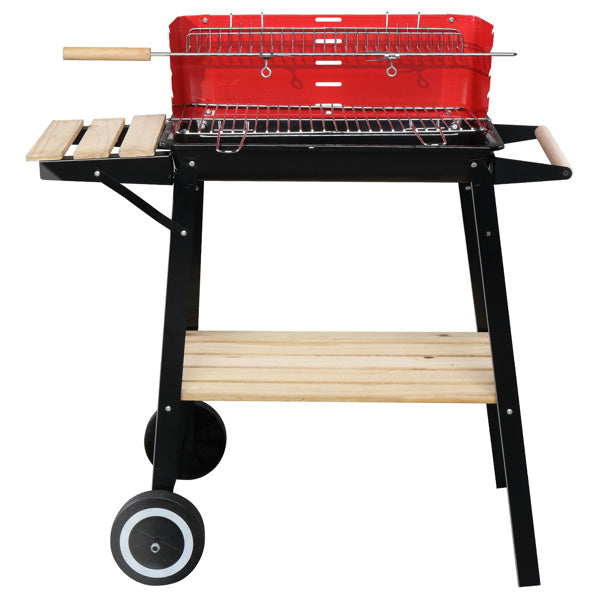 85X42X86cm Black And Red Four Legged Wheeled Square Enamel Carbon Oven