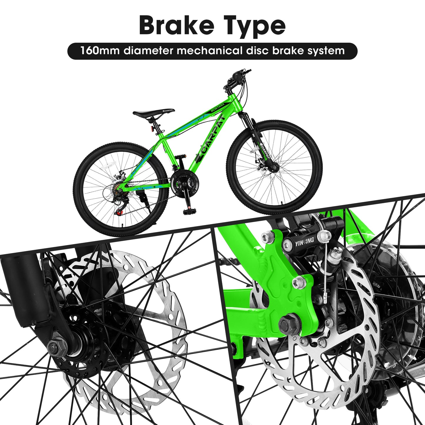 [POWERFUL DUAL DISC BRAKE] -- Our mountain bikes have precision mechanical disc brakes for more precise and controlled braking. Mechanical disc brakes are more effective than V brakes.