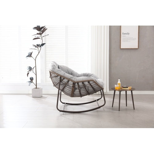 Product Name:Outdoor Rocking Chair, Patio Oversized Wicker Egg Rocking Chair, Indoor & Outdoor Comfy Rocker Chair with Thick Cushion, Modern Lounge Chair for Balcony, Front Porch, Garden, Backyard, Deck, Gray
