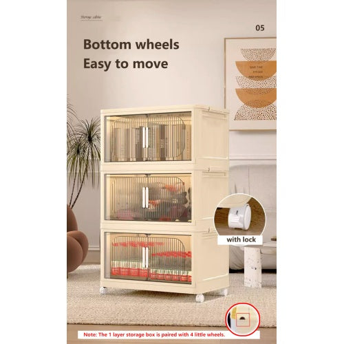 Product Name:19.69" Side Wide Folding Storage Cabinet ,3 Tiers,19.69"×11.81"×31.1",Collapsible Storage Bins with Magnetic Door, Plastic Storage Cabinet with Wheels, Closet organizers and Storage Containers