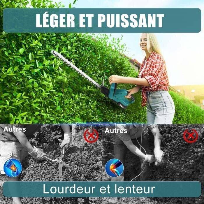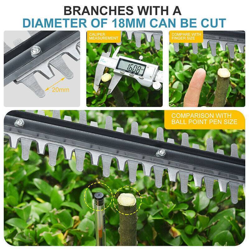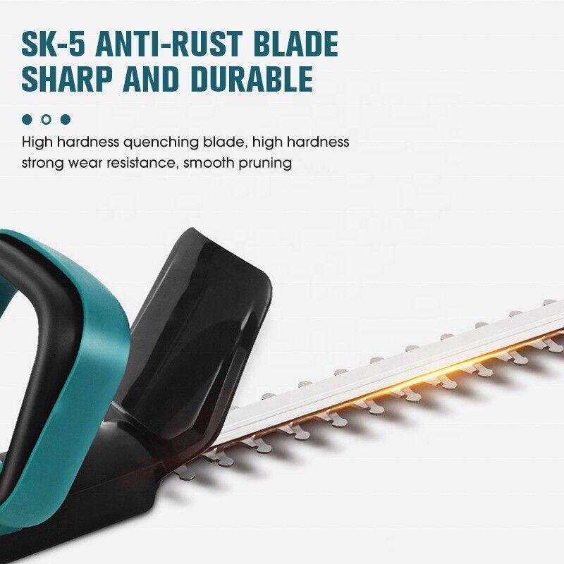Handy Wireless Hedge Trimmer: made of lightweight yet sturdy engineering ABS and metal, and it powered by rechargeable lithium battery, which made it portable to use.