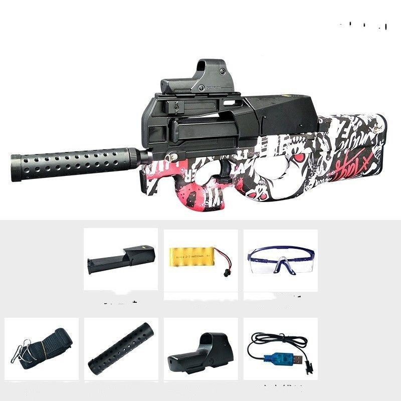Color: p90- black spider-electric soft bullet, p90- graffiti color-electric soft bullet, p90- white pearl-electric soft bullet, p90- graffiti black and red-electric soft bullet,