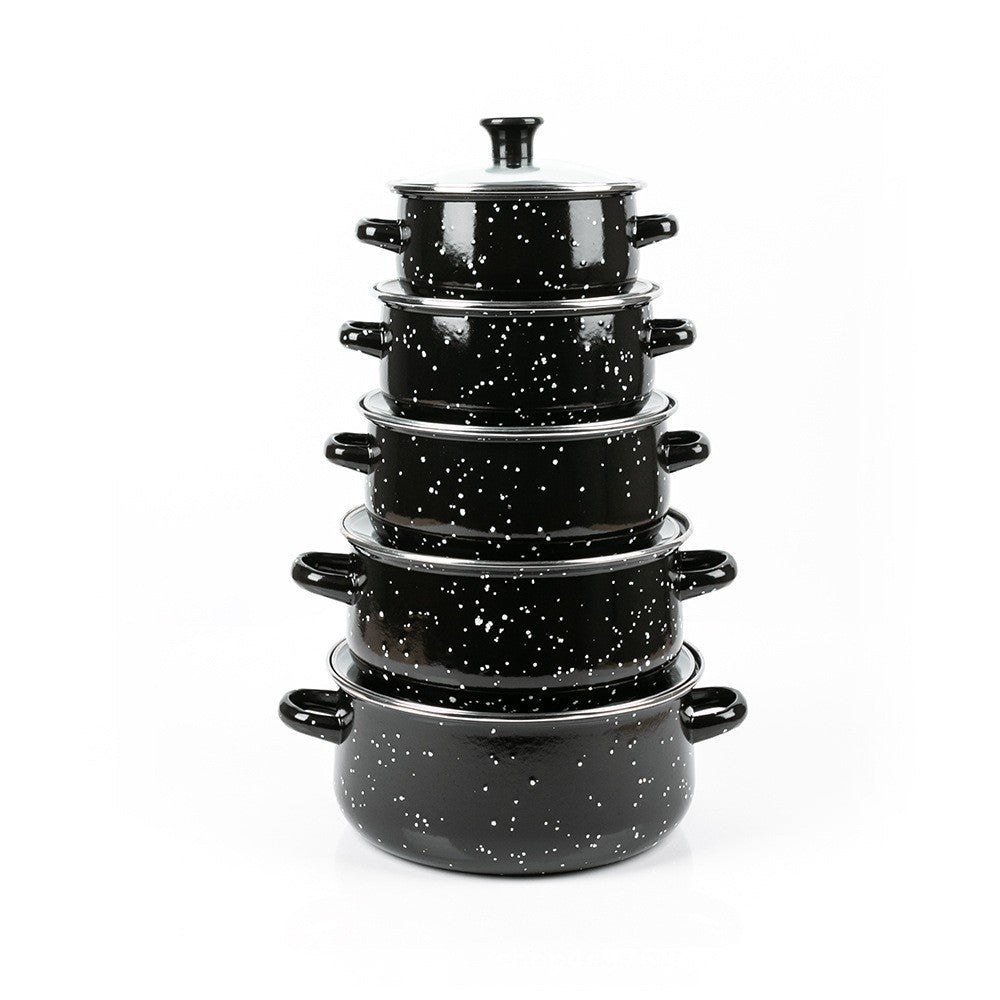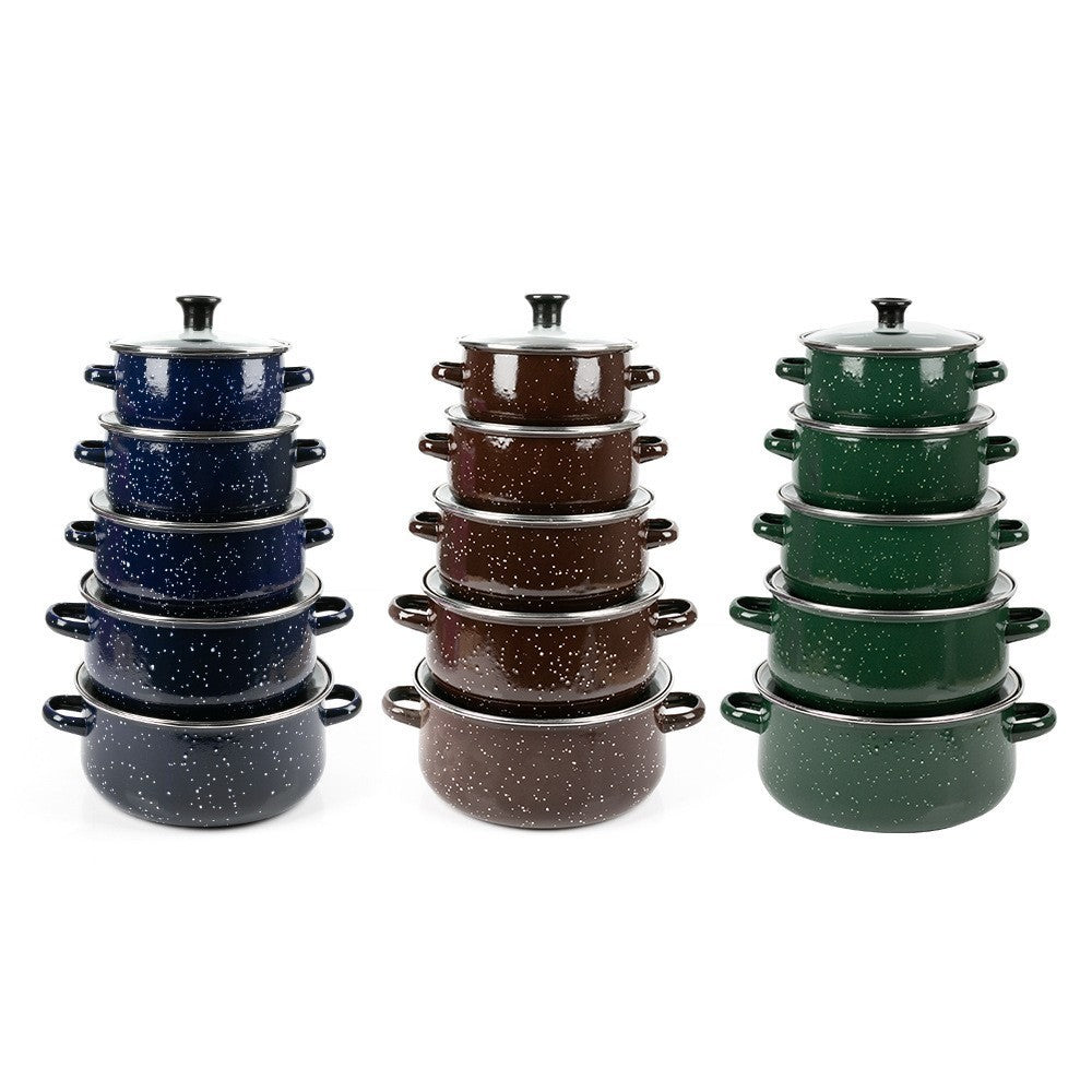 Enamel Set Five-piece Enamel Soup Pot Green Blue Brown