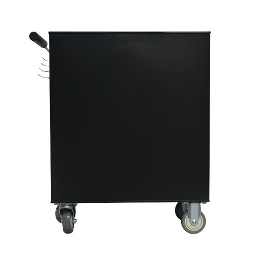 - Our toolbox is equipped with 2 wheels that can rotate 360 degrees freely and corresponding fixing devices, making it easy to move in any work environment, making it convenient for you to use in garages and other uneven terrains. Each drawer is equipped with anti slip pads to ensure that your tools are protected during movement and prevent unnecessary injury during use.