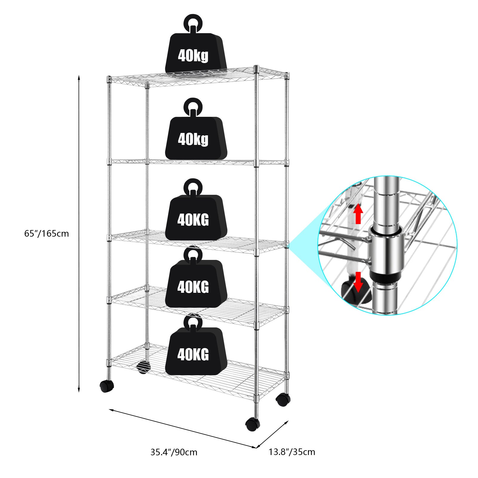The 5-Layer Chrome Plated Iron Shelf with 1.5" Nylon Wheels is perfect for organizing or displaying accessories, makeup products, tools and more. With a multi-layer construction, it accommodates items in different sizes and shapes brilliantly. Open design allows you to quickly fetch the one you want. Made with high-grade iron with chrome plating, it is tough, reliable and durable. Simple modern design coordinates well with any home and shop decor styles. Smooth wheels add to the ease of mobility. Click and order now!