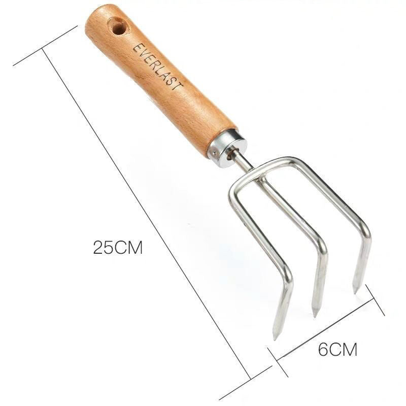 Specifications: Beech stainless steel wide shovel, beech stainless steel narrow shovel, beech stainless steel rake, beech stainless steel root extractor