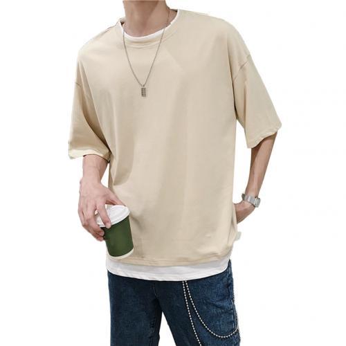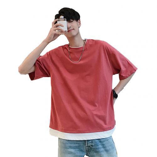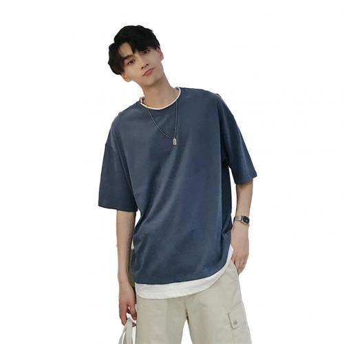 Guochao Summer Solid Color Fake Two-Piece Short-Sleeved T-Shirt Men'S Loose Half-Sleeved Round Neck Korean Style Trendy Student Compassionate