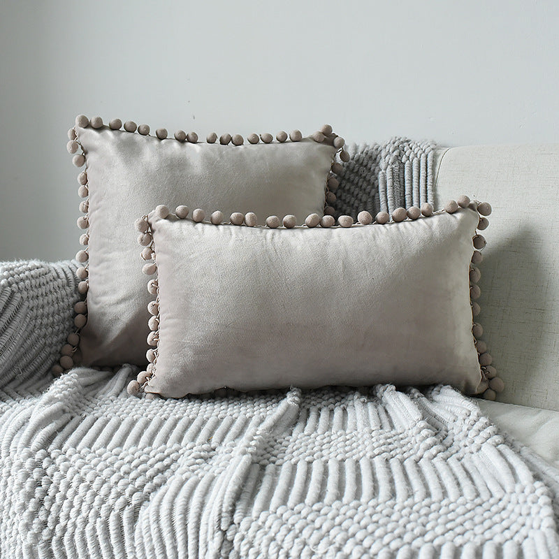 Ins Style Home Fabric Model Room Sofa Pillow Cover Hair Ball Velvet Sofa Cushion Rectangle