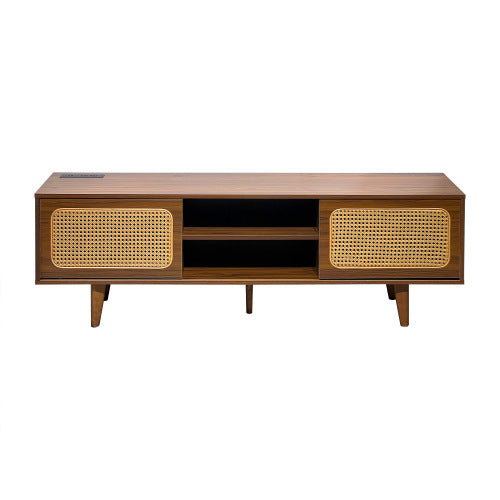 Product Name:Mid Century Modern Rattan TV Stand for 55/60/65 inch TV , Entertainment Cabinet, Media Console for Living Room Bedroom Media Room, Solid Wood Feet & Rattan Cabinet Doors (Walnut, 59")