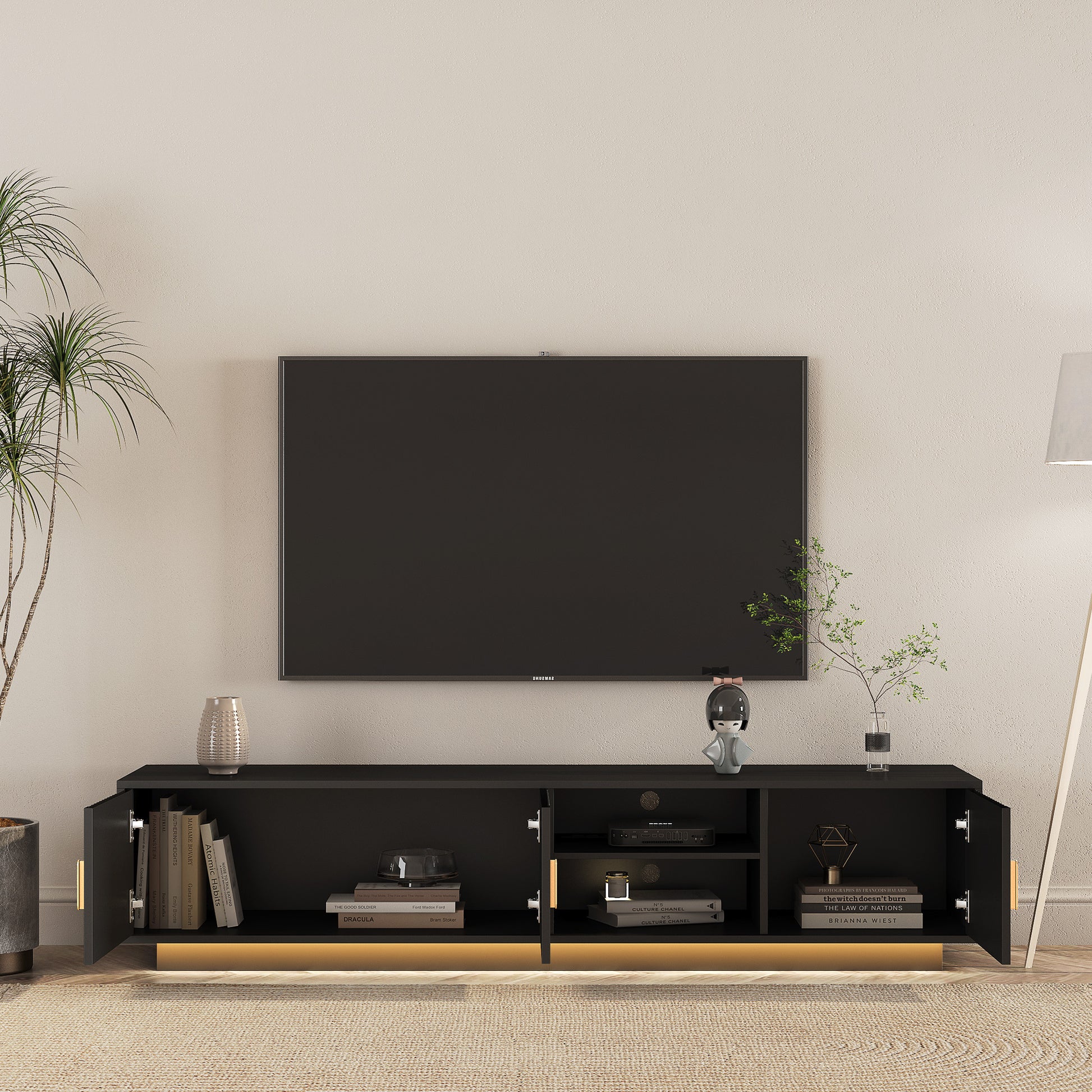 Product Name:Mid Century Modern TV Stand with LED Lights for 80 Inch TV, Entertainment Center Wooden TV Stand, TV Stand Desk Media Cabinet with Storage for Living Room Bedroom
