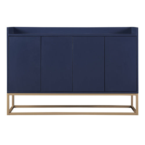 This sideboard buffet cabinet features a navy blue body with gold metal legs for a compact look that's perfect for small spaces. Overall dimensions: 47.2" L x 11.8" W x 31.5" H.
