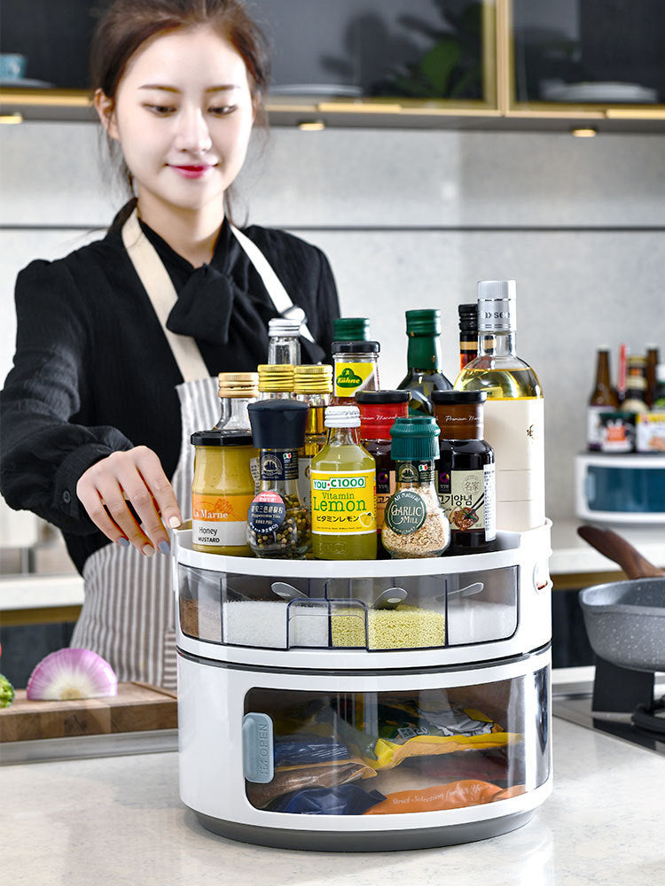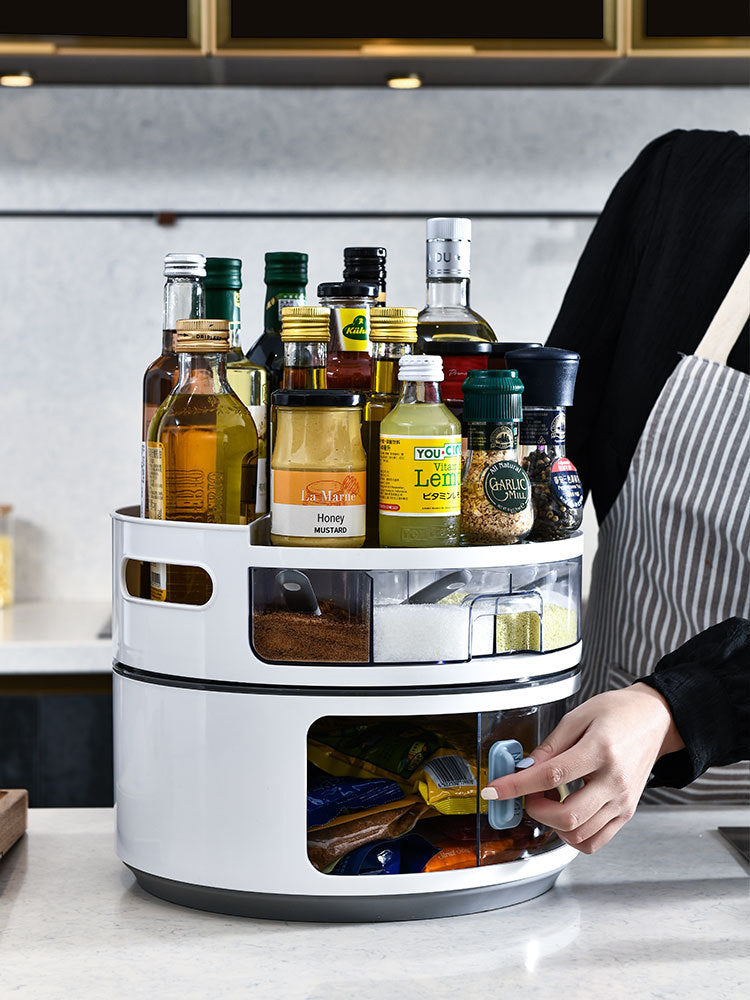 Multifunctional Double-layer Round Turntable For Kitchen Storage Rack