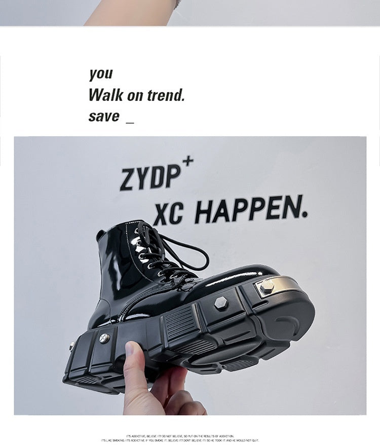 New Men's Chunky Heel Platform Round Head Lace-up Martin Boots