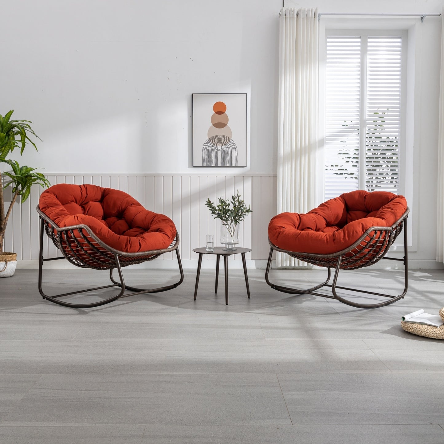 Outdoor Rattan Rocking Chair,Padded Cushion Rocker Recliner Chair Outdoor for Front Porch, Living Room, Patio, Garden, Orange