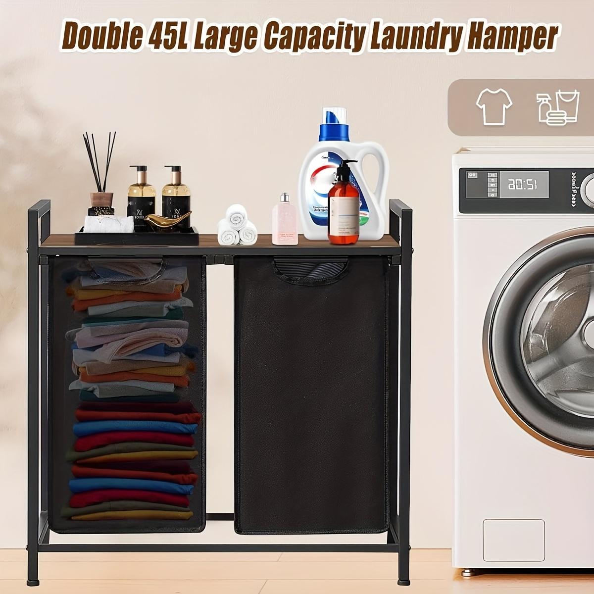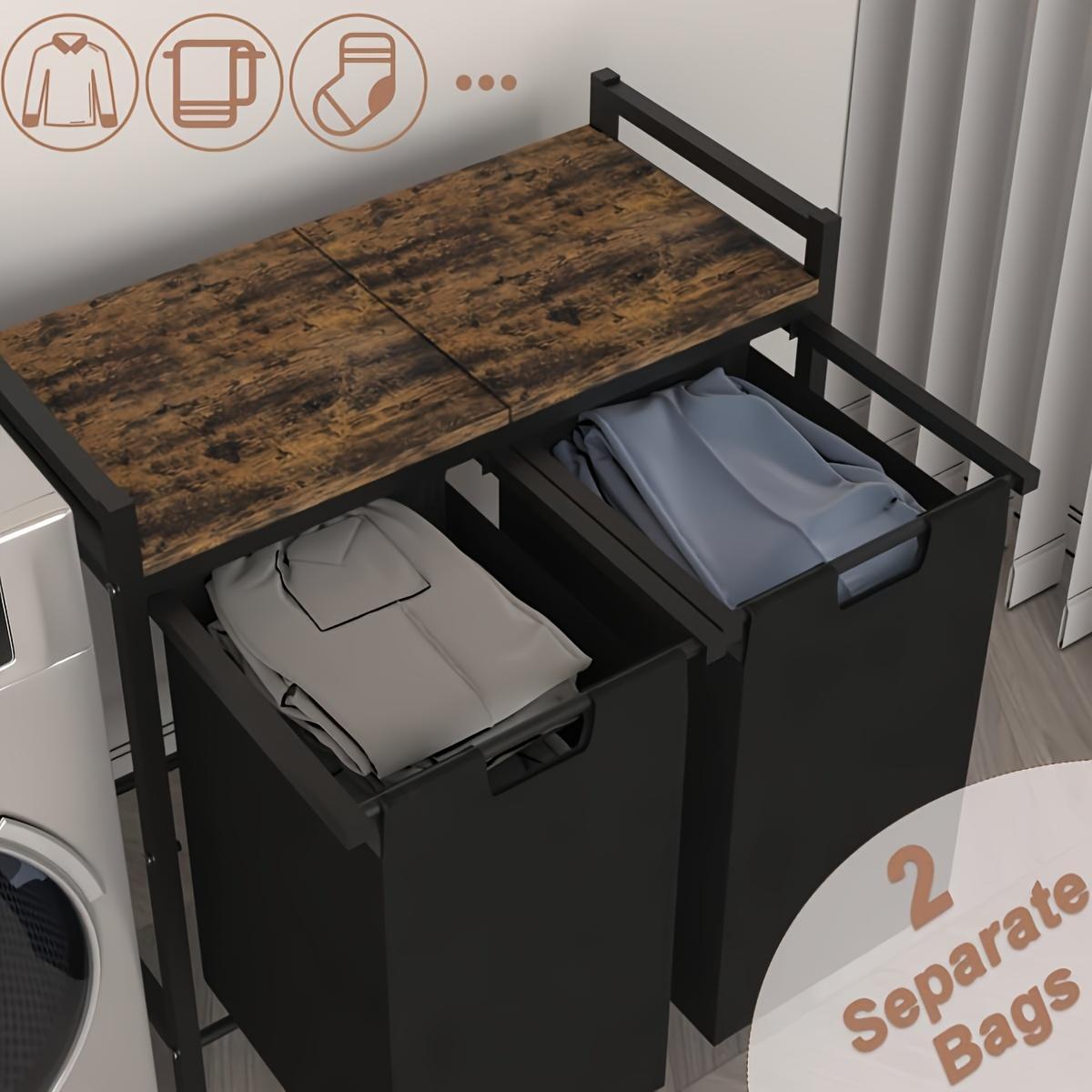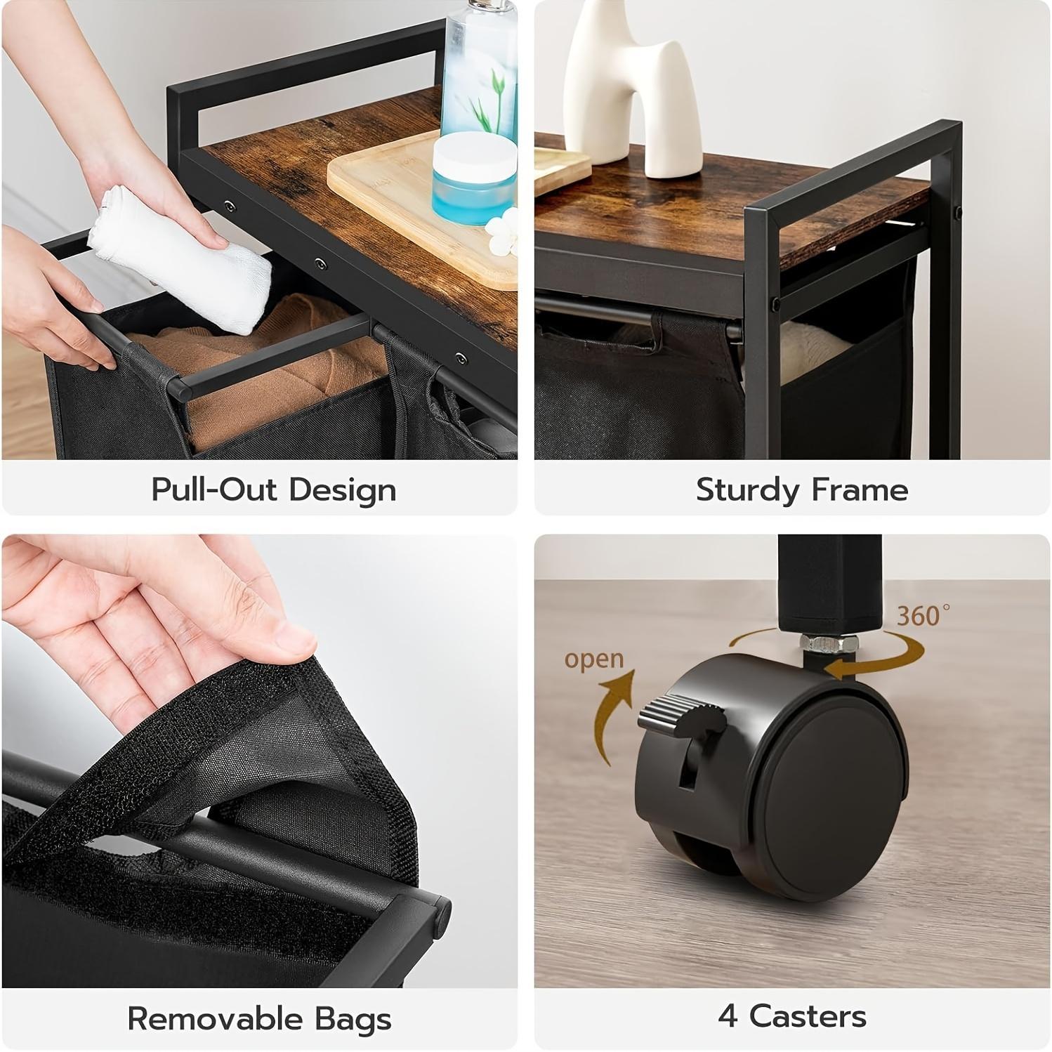 Patio Covered Laundry Basket With Rolling Wheels, Iron Laundry Sorter With Top Rack & 2 Detachable Bags, Outdoor Storage Box For Laundry