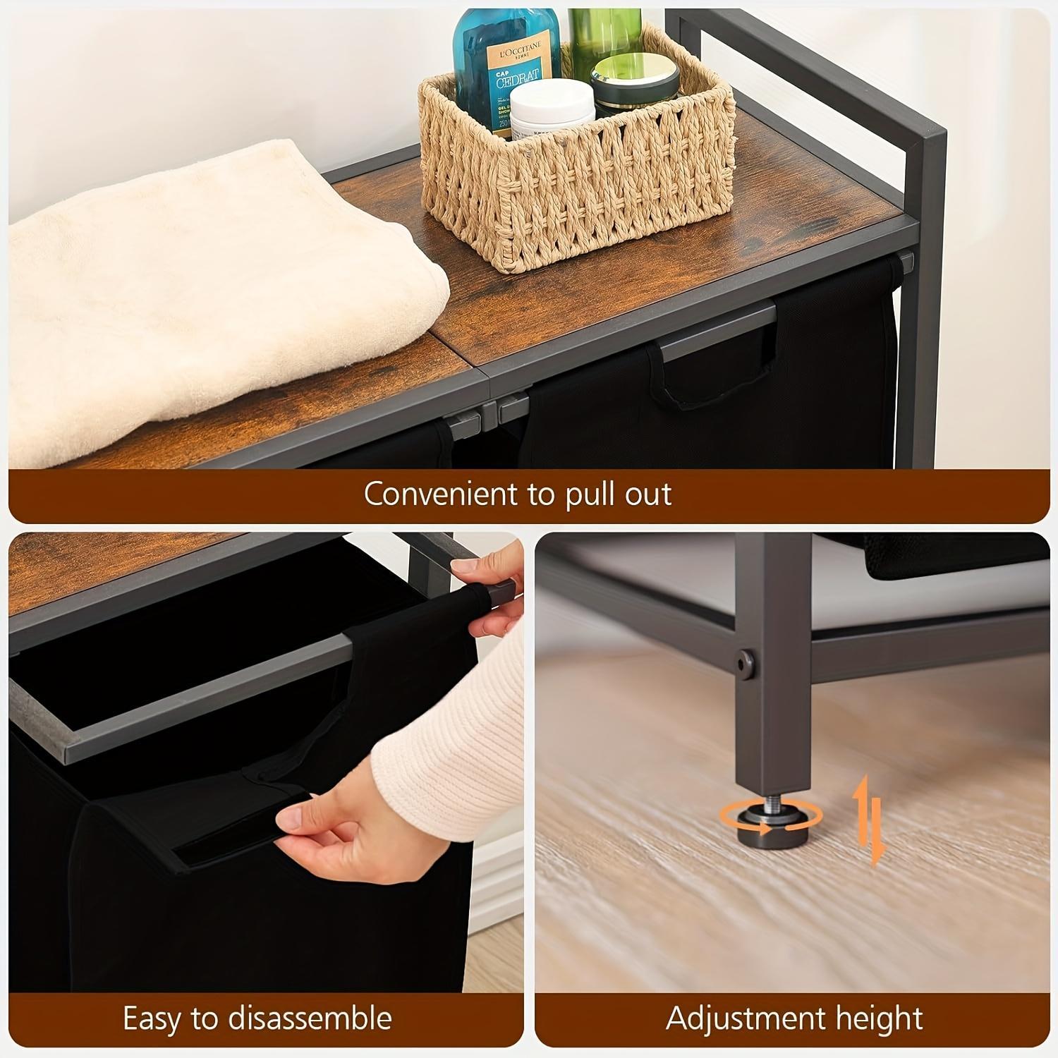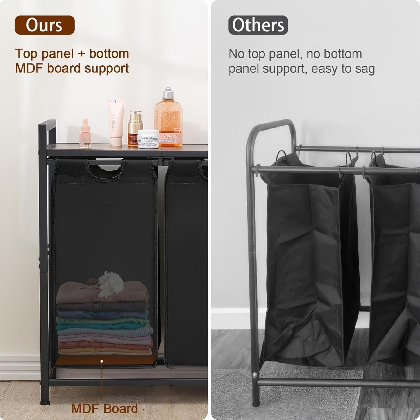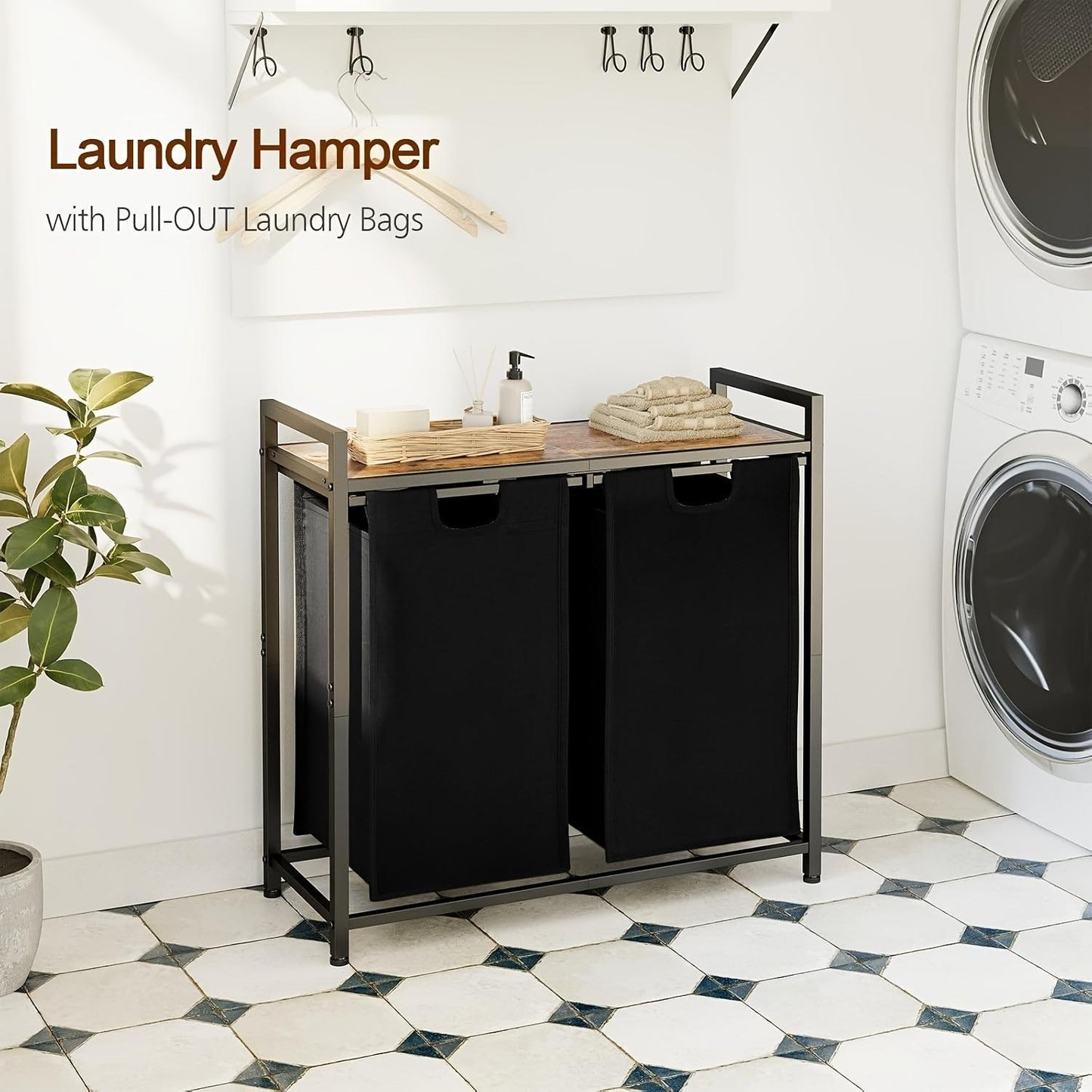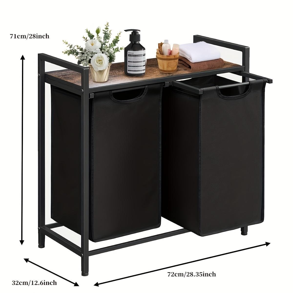 Patio Covered Laundry Basket With Rolling Wheels, Iron Laundry Sorter With Top Rack & 2 Detachable Bags, Outdoor Storage Box For Laundry