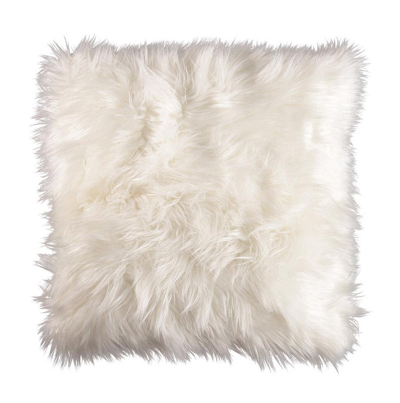 "Luxury Decorative" Faux Fur Pillow in White (18-in x 18-in). Hand tufted and extra soft. 100% acrylic with 100% polyester fill. Scratch resistant on hardwood floors. Hand Wash Cold Water. No Tumble Drying. For minor spills, spot clean with a mild detergent using a wet cloth or paper towel. One Year Limited Manufacturer Warranty.