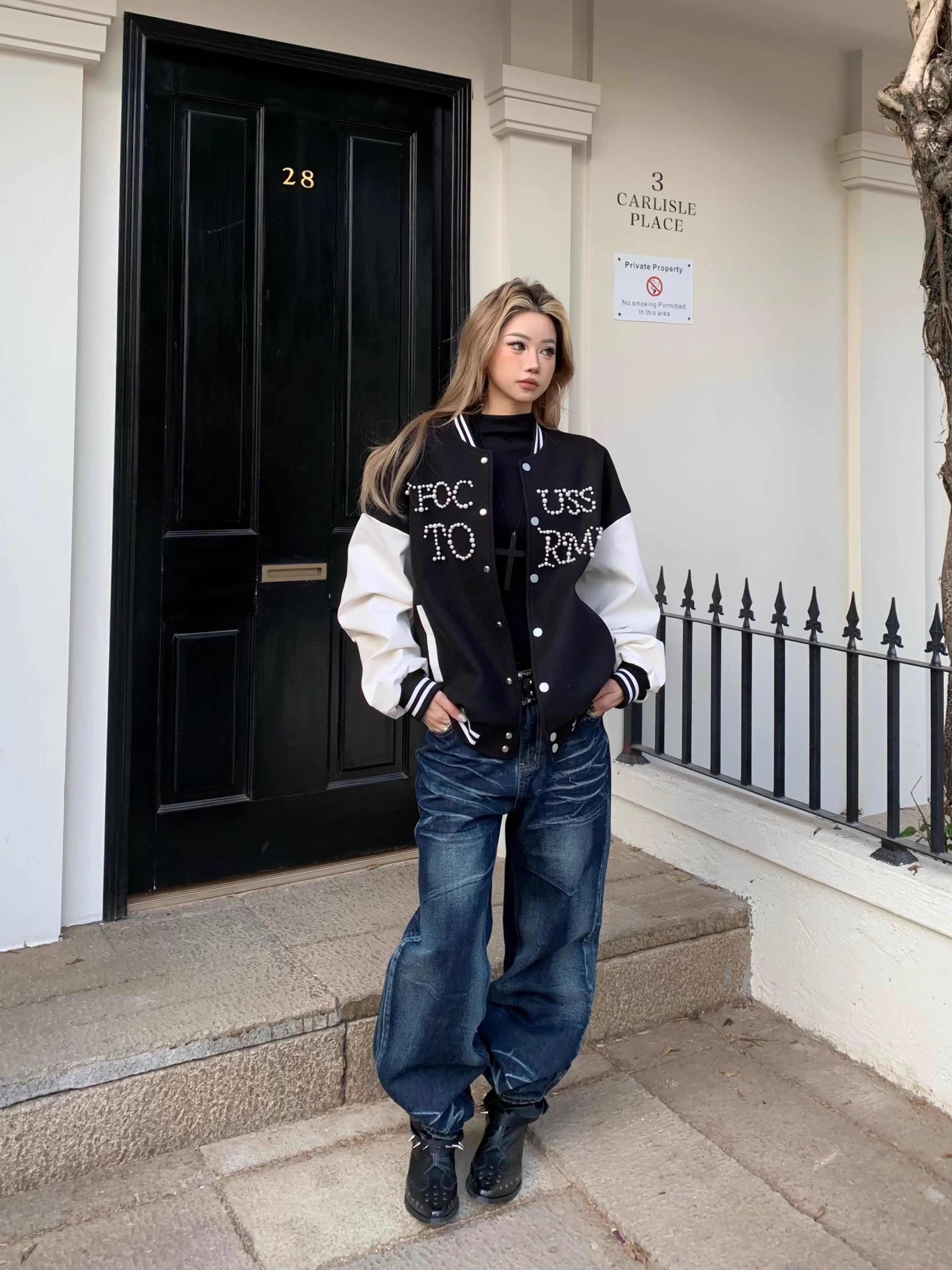 Retro Baseball Jacket Women's Beaded Jacket Loose Top