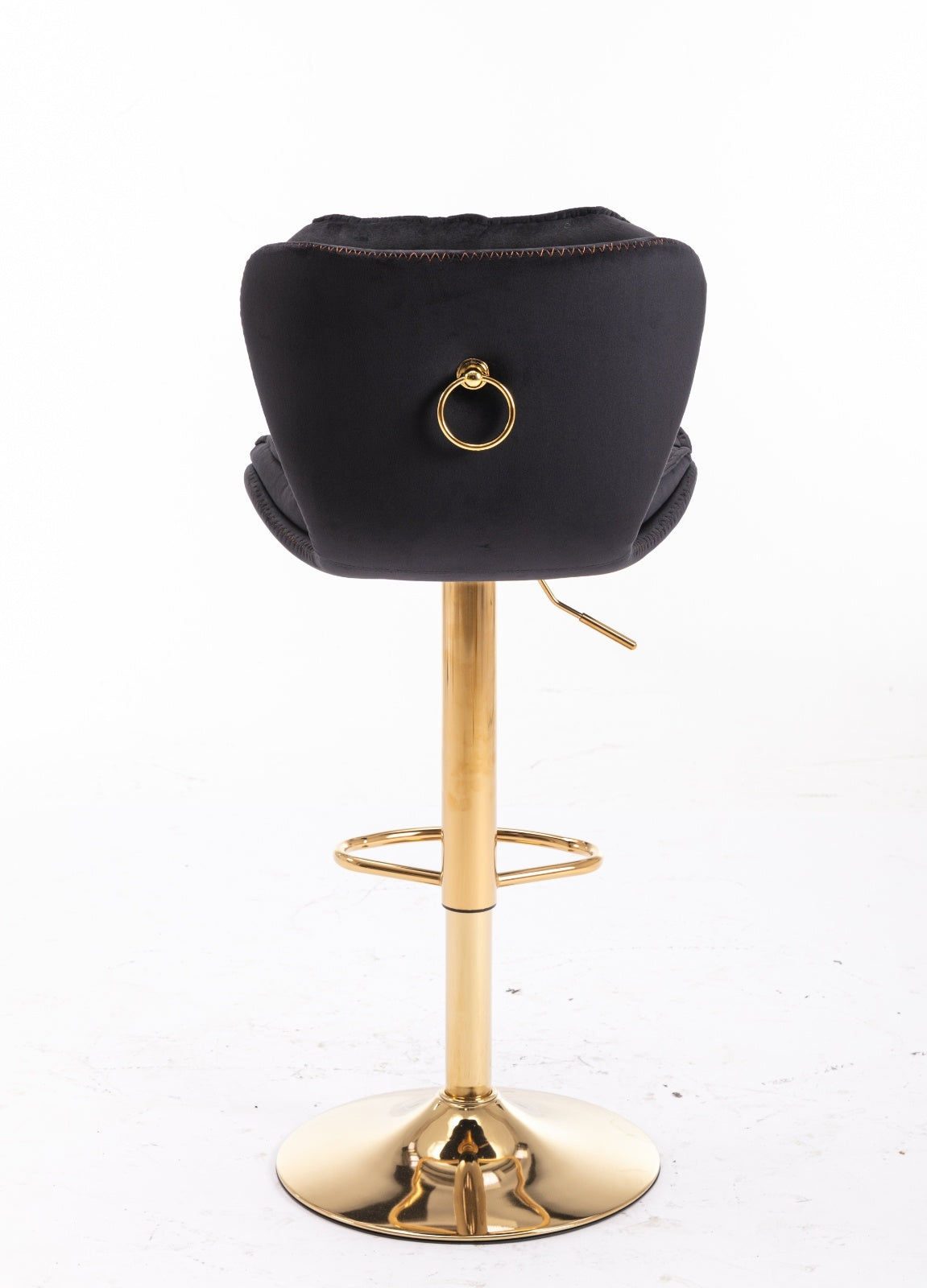 Set of 2 Bar Stools,with Chrome Footrest and Base Swivel Height Adjustable Mechanical Lifting Velvet + Golden Leg Simple Bar Stool-black