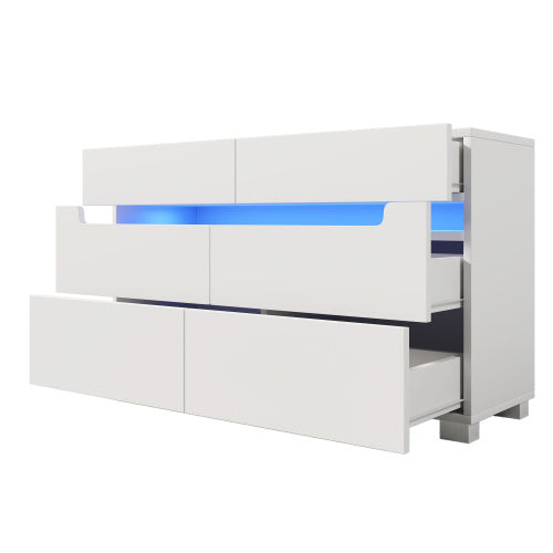 Product Name:Sideboard Cabinet Dresser with 6 Drawers,Storage with RGB LED(App Control), Sideboard with Cut-out Handles, 6-drawers Chest of Drawers, 71 x 120 x 40 cm, White