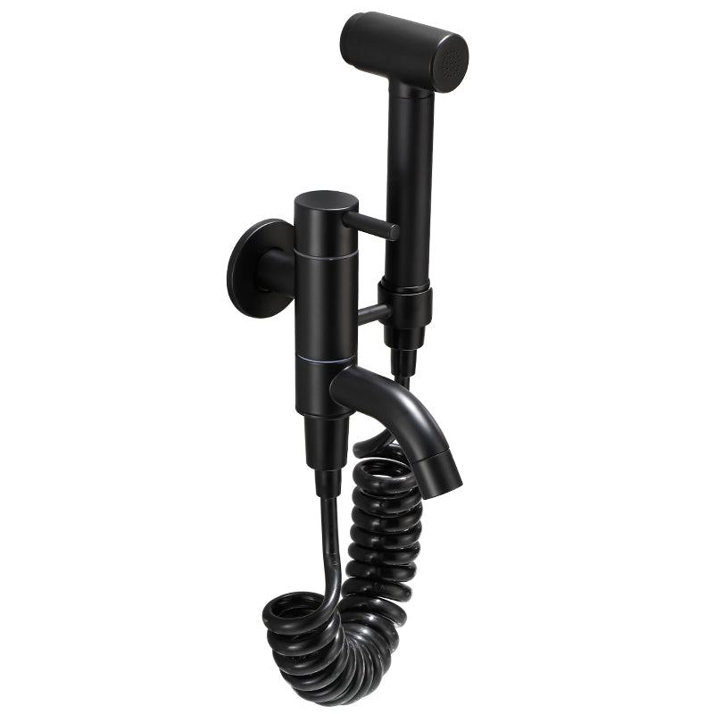 Model D1: All copper body mop pool faucet (5 years warranty) + 2m telephone cord hose + all copper button pressurized spray gun