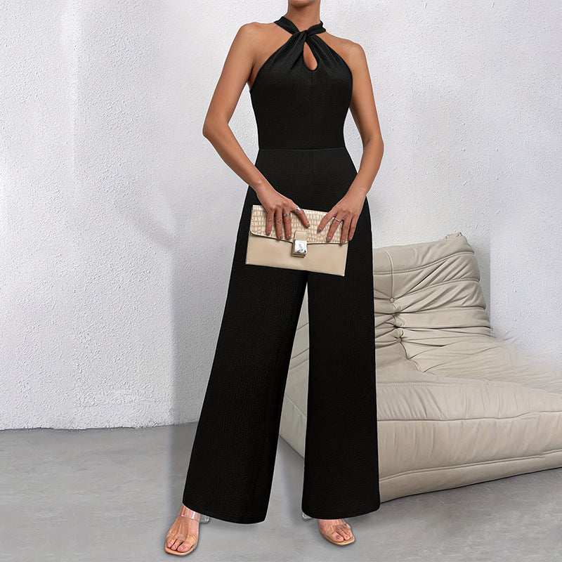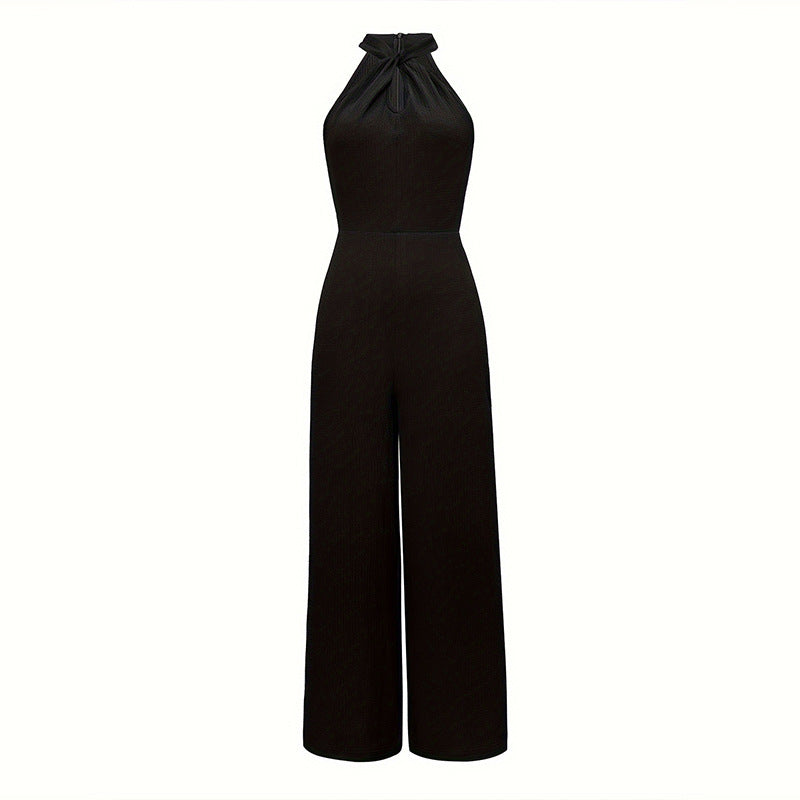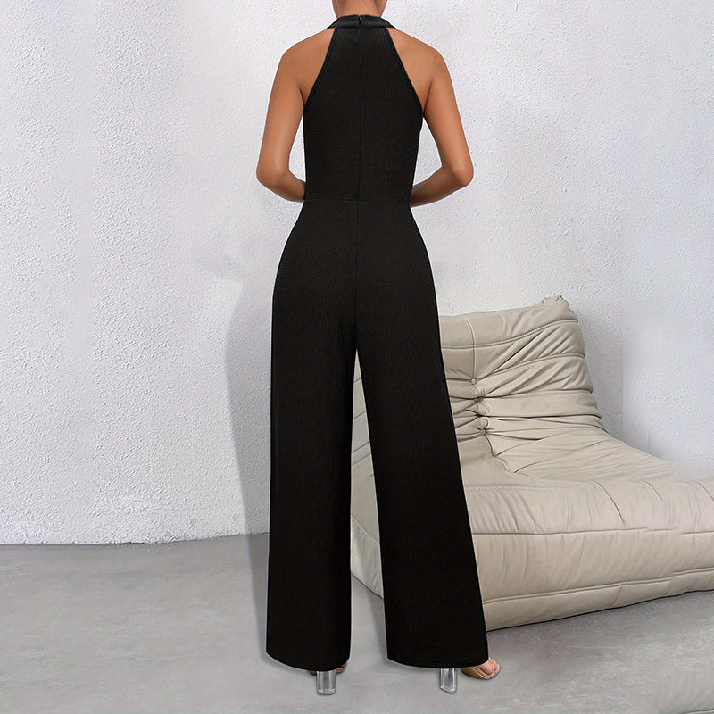 Solid Color Elegant Commuter Halter Sleeveless Long Jumpsuit