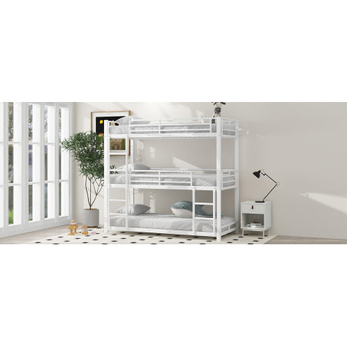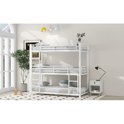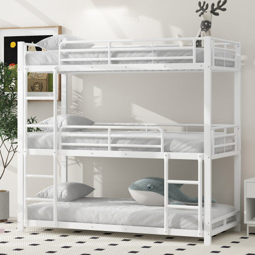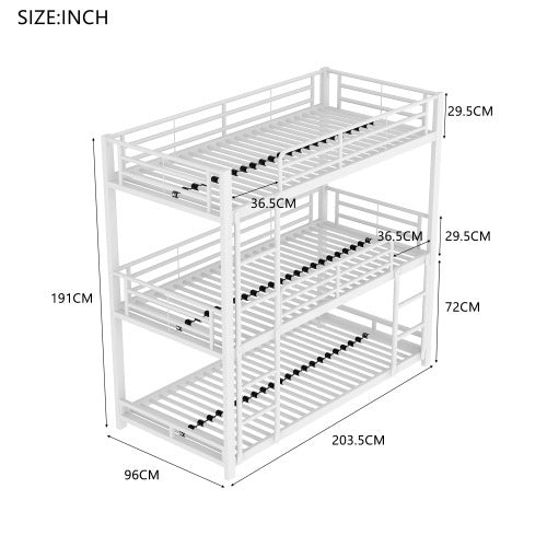 Product Name:90x200cm Bettgestell Metallbett,Etagenbett,Eisenbett, Dreifach-Etagenbett für Kinder, Jugendliche und Erwachsene, Weiß