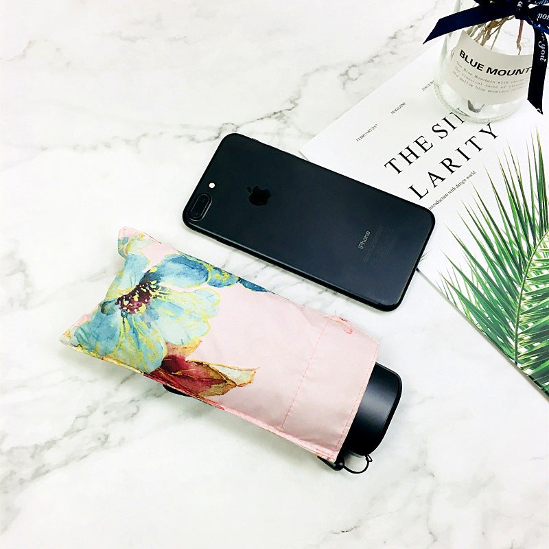 Mini Flat Five-fold Umbrella Vinyl Folding Sun Umbrella Umbrella Dual-use Sun Protection Pocket Umbrella Sun Umbrella For Women